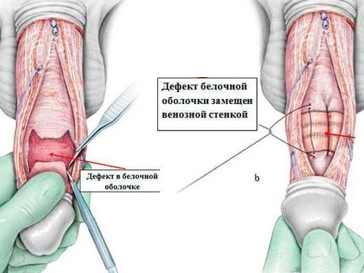 Корпоропластика с графтом — при выраженных деформациях. Выпрямление полового члена достигается посредством удлинения белочной оболочки со стороны деформации. Такие операции часто выполняют при болезни Пейрони. Доктор иссекает белочную оболочку, а дефицит ткани закрывает трансплантационным материалом. Лоскутная корпоропластика справляется со сложными деформациями полового члена, не приводит к уменьшению длины пениса.